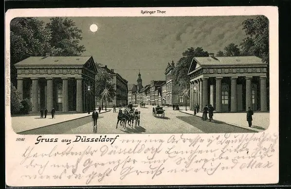 Mondschein-Lithographie Düsseldorf, Gruss aus der Stadt, Ratinger Tor