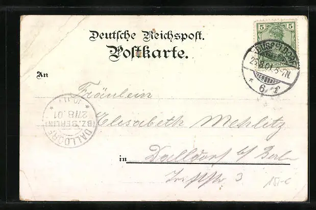 gelaufen 1901, Eckknicke re. u. unten li., guter Zustand