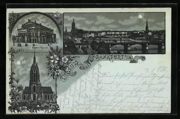 Mondschein-Lithographie Frankfurt a. M., Opernhaus, Dom, Panorama