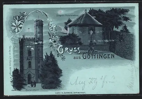 Mondschein-Lithographie Göttingen, Bismarcks Studentenwohnung, Bismarckturm