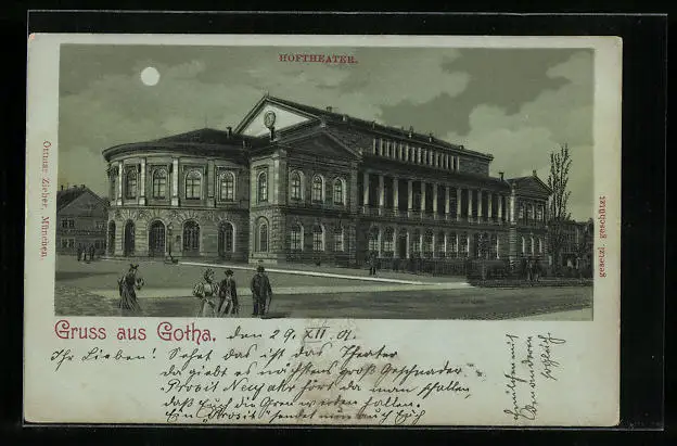 Mondschein-Lithographie Gotha, Blick auf das Hoftheater