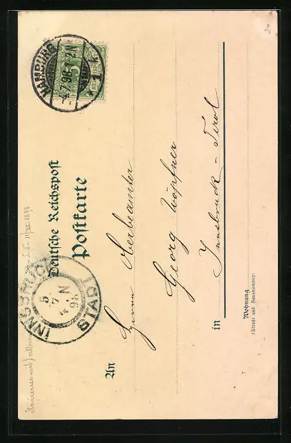 gelaufen 1898, Eckknick unten li., guter Zustand