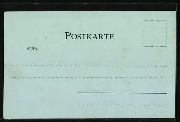 Personenbezogene Daten auf der Rückseite der Karte wurden durch blauen Textmarker unkenntlich gemacht. Die blauen Stellen sind auf die Vorderseite durchgeweicht und wirken sich negativ auf das Postkartenfoto aus