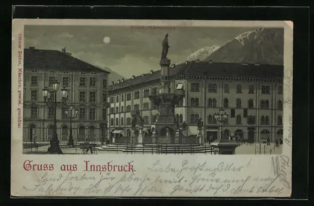 Mondschein-Lithographie Innsbruck, Rudolfsbrunnen