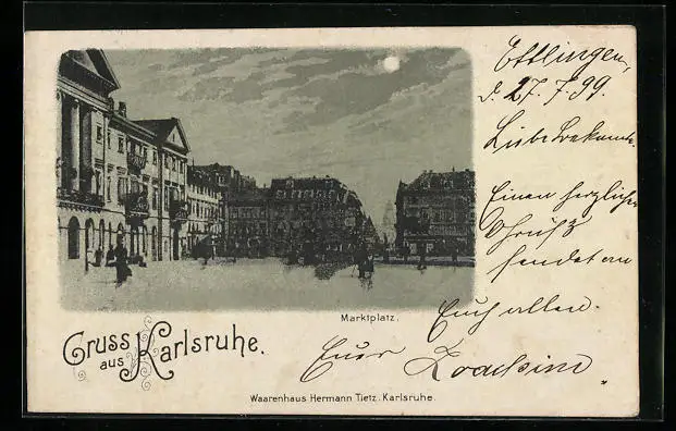 Mondschein-Lithographie Karlsruhe, Marktplatz
