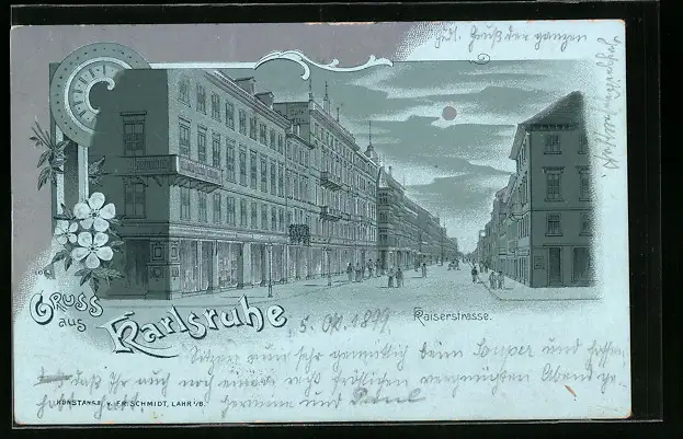 Mondschein-Lithographie Karlsruhe, Partie in der Kaiserstrasse