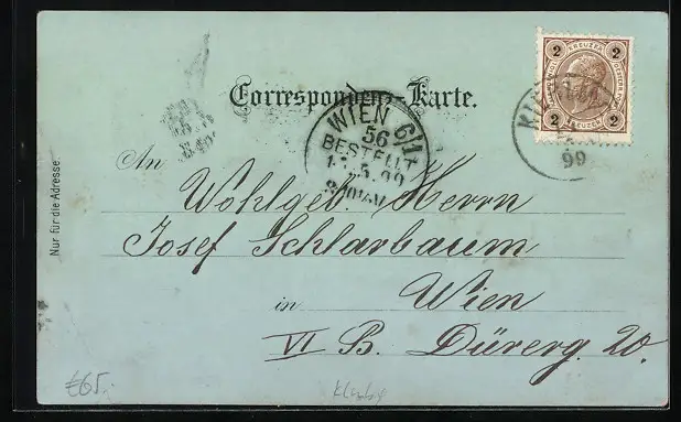 Personenbezogene Daten auf der Rückseite der Karte wurden durch blauen Textmarker unkenntlich gemacht. Die blauen Stellen sind auf die Vorderseite durchgeweicht und wirken sich negativ auf das Postkartenfoto aus