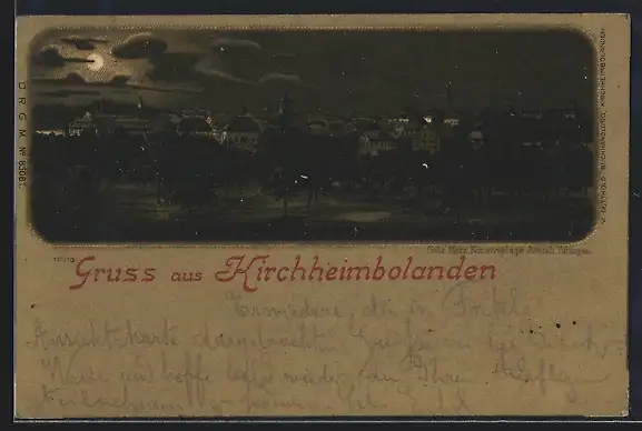 Mondschein-Lithographie Kirchheimbolanden, Ortsansicht aus der Vogelschau