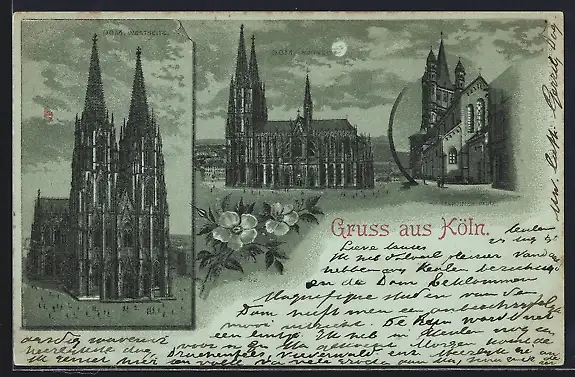 Mondschein-Lithographie Köln, Der Dom, Martinskirche