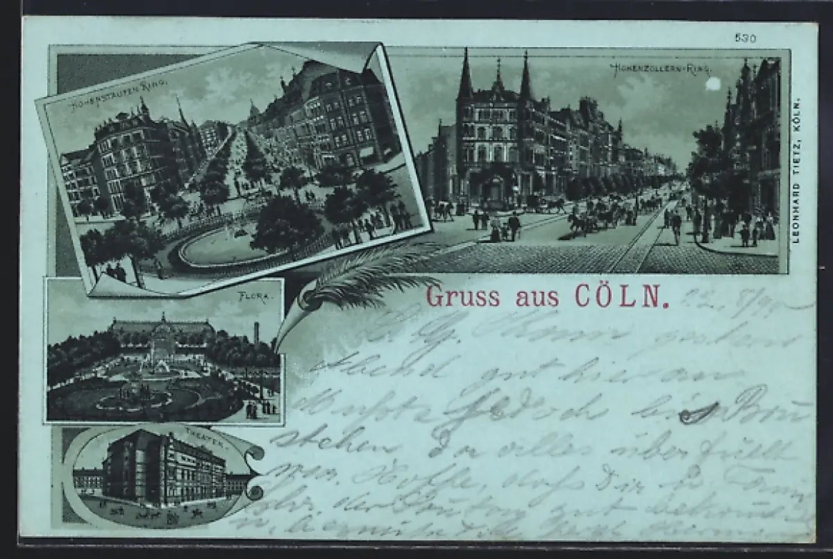 Mondschein-Lithographie Köln, Hohenstaufen-Ring, Flora, Theater