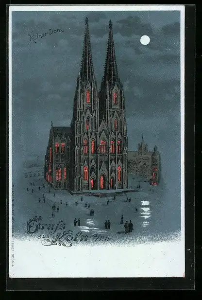 Mondschein-Lithographie Köln a. Rh., Dom bei Vollmond