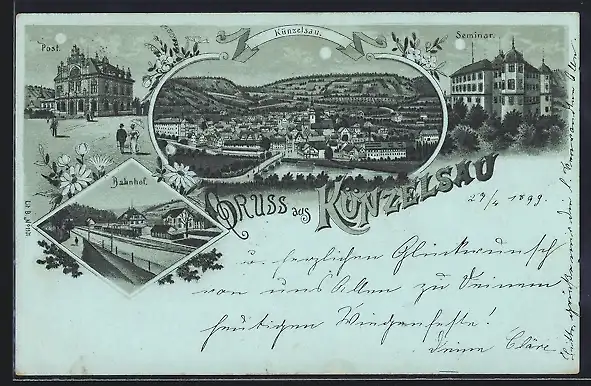 Mondschein-Lithographie Künzelsau, Post, Seminar, Bahnhof