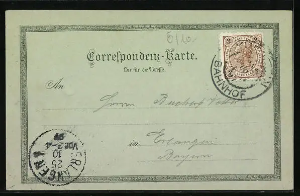 Personenbezogene Daten auf der Rückseite der Karte wurden durch blauen Textmarker unkenntlich gemacht. Die blauen Stellen sind auf die Vorderseite durchgeweicht und wirken sich negativ auf das Postkartenfoto aus