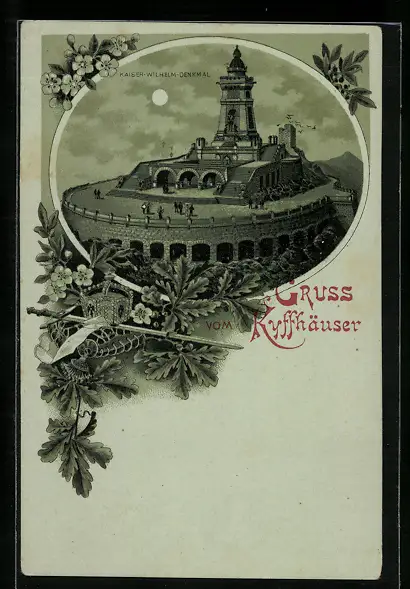 Mondschein-Lithographie Kyffhäuser, Kaiser-Wilhelm-Denkmal