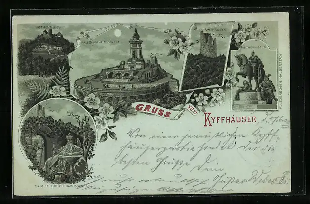 Mondschein-Lithographie Kyffhäuser, Kaiser Wilhelm-Denkmal, Reiterstandbild