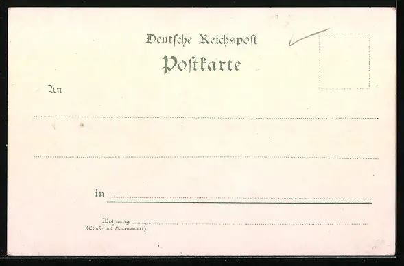 Personenbezogene Daten auf der Rückseite der Karte wurden durch blauen Textmarker unkenntlich gemacht. Die blauen Stellen sind auf die Vorderseite durchgeweicht und wirken sich negativ auf das Postkartenfoto aus