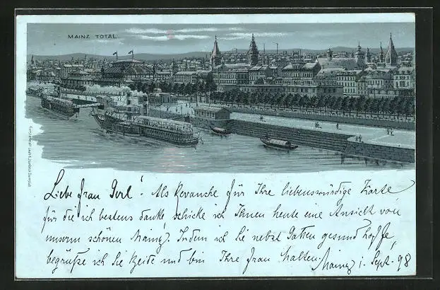 Mondschein-Lithographie Mainz, Totalansicht mit Silberfärbungen