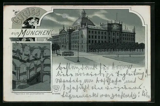 Mondschein-Lithographie München, Justizpalast, Treppenhaus des Justizpalastes