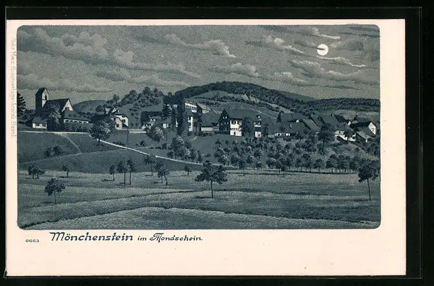 Mondschein-Lithographie Münchenstein, Totalansicht im Vollmondlicht