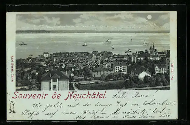Mondschein-Lithographie Neuchâtel, Teilansicht