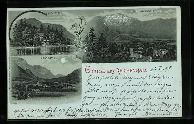 Mondschein-Lithographie Reichenhall, Bad Kirchberg, Grossgmain, Am Thumsee