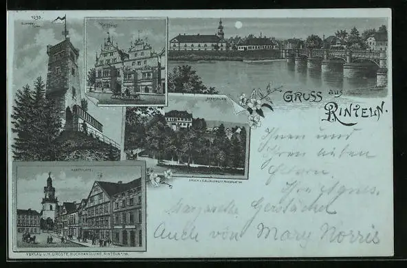 Mondschein-Lithographie Rinteln, Klippenturm, Rathaus, Arensburg