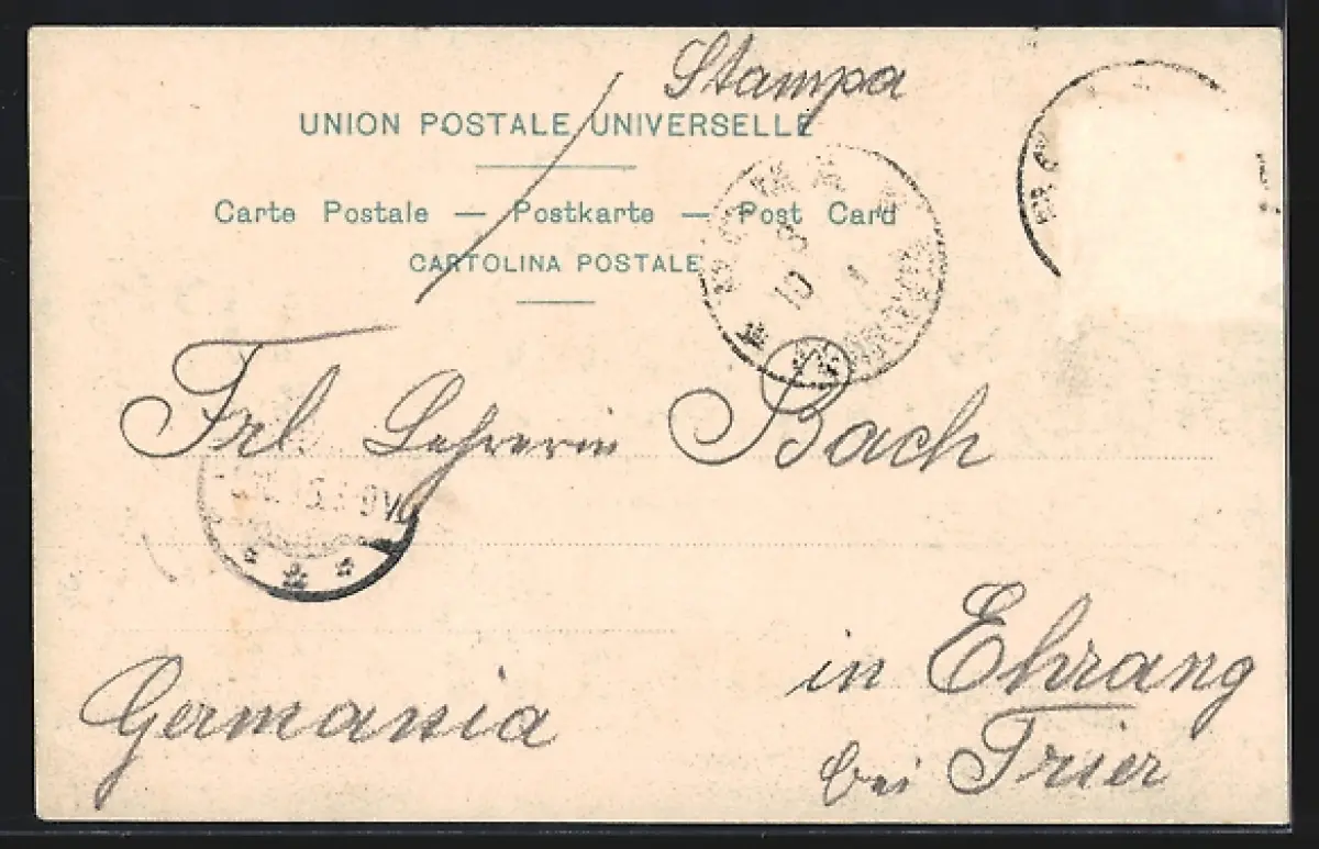 gelaufen, Briefmarke entfernt, rückseitig Oberflächenschaden, guter Zustand