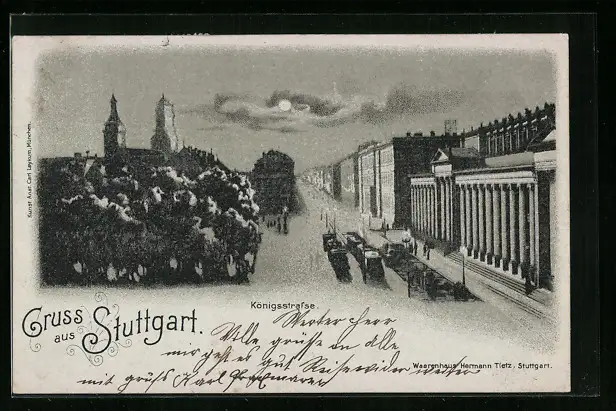 Mondschein-Lithographie Stuttgart, Blick auf Königsstrasse