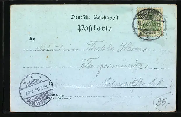 gelaufen 1905, Ecken bestoßen, guter Zustand