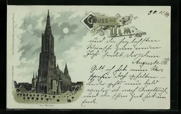 Mondschein-Lithographie Ulm, Blick auf Münster