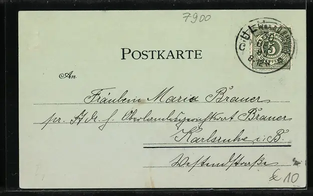 gelaufen 1899, Stempelspur, rückseitig Klebe- und Papierreste, guter Zustand