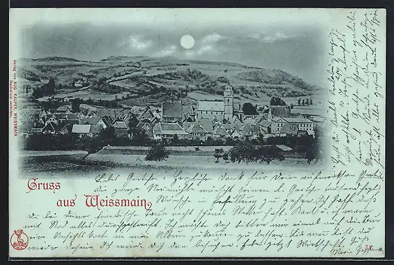 Mondschein-Lithographie Weissmain, Teilansicht mit Kirche