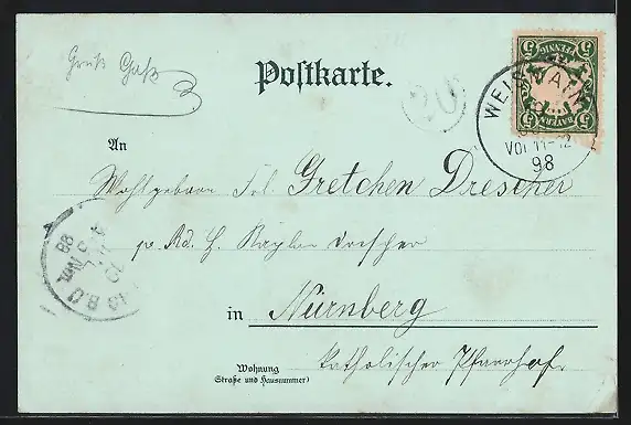 gelaufen 1898, Eckknicke li. unten, guter Zustand