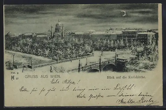 Mondschein-Lithographie Wien, Blick auf die Karlskirche