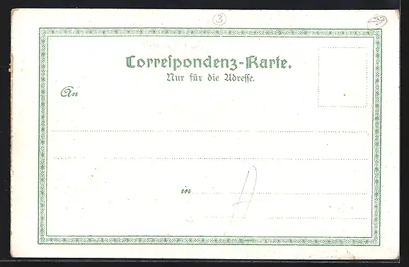 Personenbezogene Daten auf der Rückseite der Karte wurden durch blauen Textmarker unkenntlich gemacht. Die blauen Stellen sind auf die Vorderseite durchgeweicht und wirken sich negativ auf das Postkartenfoto aus