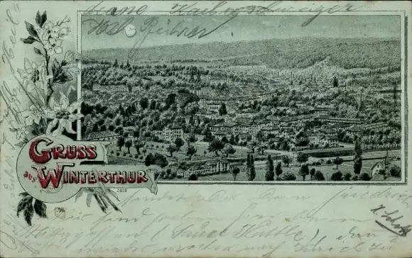Mondschein Passepartout Litho Winterthur Kt. Zürich Schweiz, Gesamtansicht
