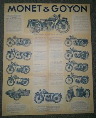 12 Seiten 22 x 18 cm Faltblatt Supersport 350 ccm type G and H, 350 ccm Superstandard type MG 35, 350 ccm Tourisme type NF, 350 ccm Standard type MG 351, 250 ccm Populaire type Mg 25, 2 CV type MG 15 B, 250 / 350 Sport-Confort, 250 ccm Standard tye AT, 175 ccm Supersport typ MG 17B, Tri-Monet und L`auto-mouche Französischer Text Guter Zustand