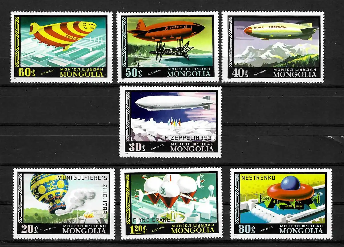 Mongolei: Geschichte der Ballone und Luftschiffe, #1118-1124, postfrisch