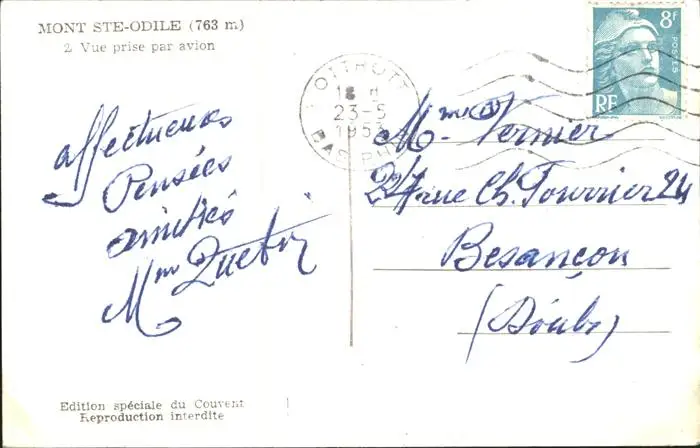Mont-Ste-Odile Mont-Sainte-Odile Couvent vue aerienne Kloster Rhinau postalisch gelaufen 1953 Erhaltung siehe scans Alte Ansichtskarte Postkarte hz Fhwoer