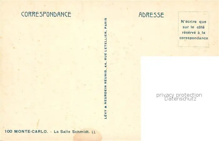 Monte-Carlo La Salle Schmidt Spieltisch Monte-Carlo postalisch nicht gelaufen bis 1920 Erhaltung siehe scans [LiesaD40] LiesID40