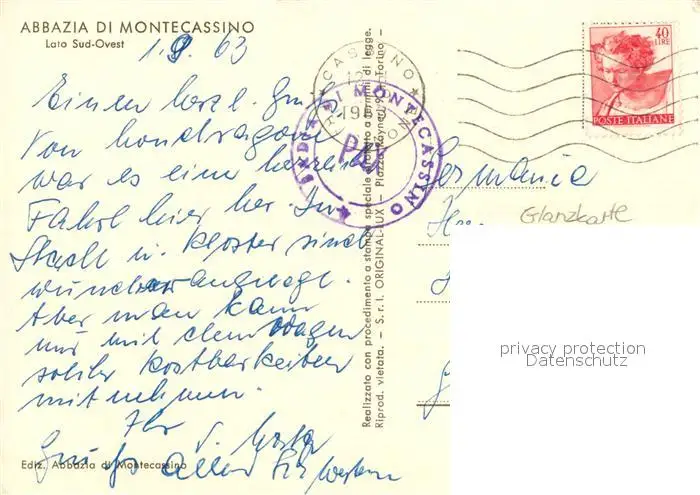 Montecassino Montecassino postalisch gelaufen 1963 Erhaltung siehe scans [PaolaD17] PaolPID1