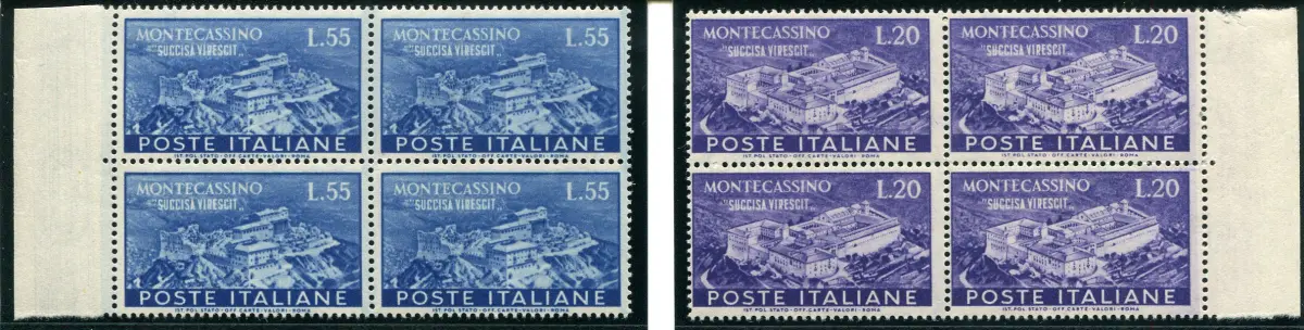 Montecassino Nr. 664/665 Vierzelt-Vollgummi-Serie - Montecassino Nr. 664/665 Serie in Viertel b. von f. sehr frisch von normaler Zentrierung (sehr gut 55 Lire) - Kat. 475 Code 322/8