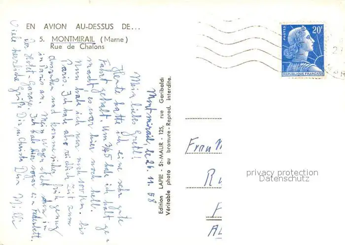 Montmirail_Marne Rue de Chalons Vue aerienne Montmirail Marne postalisch gelaufen 1958 Erhaltung siehe scans [WerneD78] WernPID7