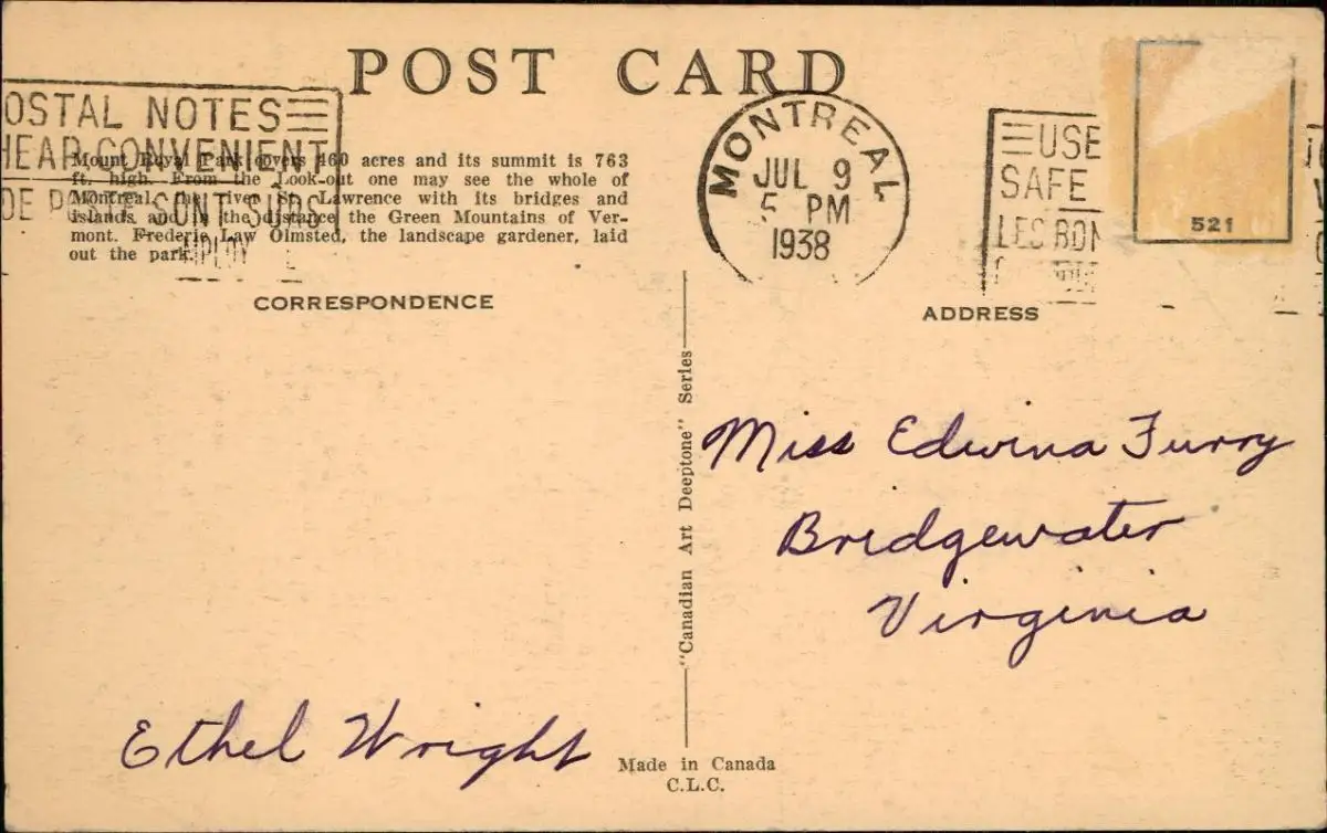 Montreal Panoramic LOOK-OUT ON MOUNT ROYAL, Panorama-Ansicht 1938