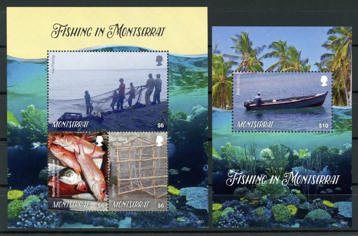 Montserrat Block aus 2018 postfrisch Kleinbogen Fischer #GU590