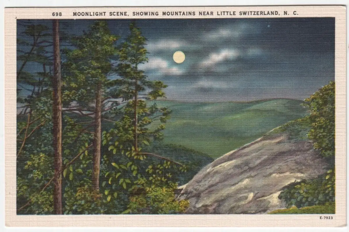 Moonlight Scene. Showing Mountains Near Little Switzerland, N. C.
