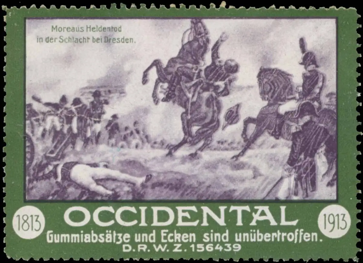 Occidental Gummiabsätze und Ecken sind unübertroffen. Befreiungskriege, Größe/Zustand: 5x6 , guter Zustand, Original alte Reklamemarke die seinerzeit für die Werbung benutzt wurde