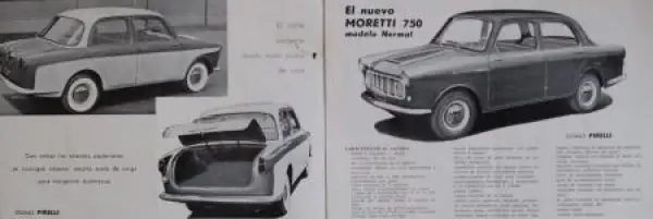 Moretti 750 Modellprogramm 1958 Automobilprospekt (6035)