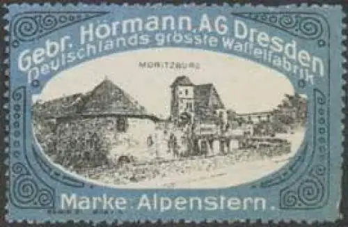 Deutschlands grösste Waffelfabrik, Waffeln Marke Alpenstern, Größe/Zustand: 3x5 , leicht beschädigt, Original alte Reklamemarke die seinerzeit für die Werbung benutzt wurde