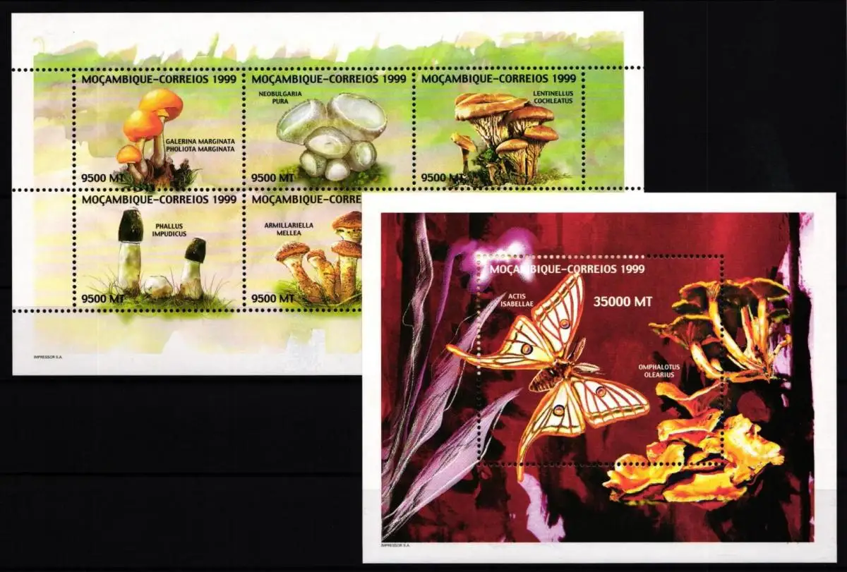 Mosambik 1489-1494 und Block 34 postfrisch Kleinbogen / Pilze #JA614